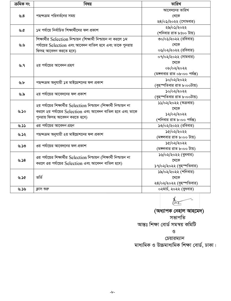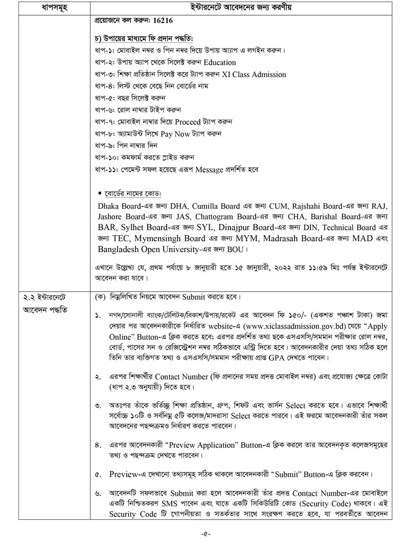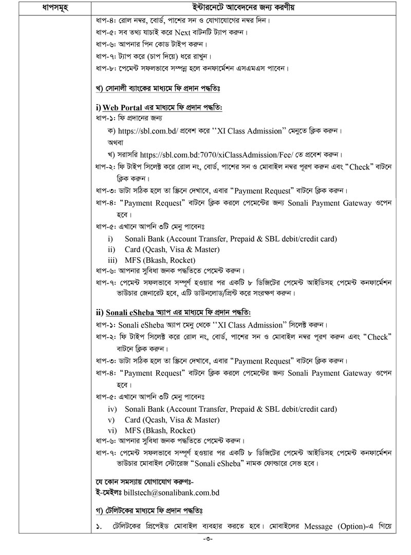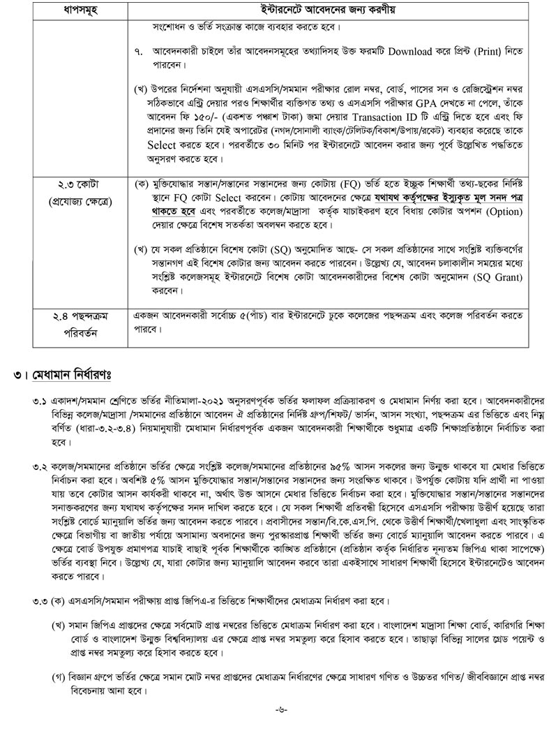 একাদশ শ্রেনী ভর্তির আবেদন নিয়মাবলী