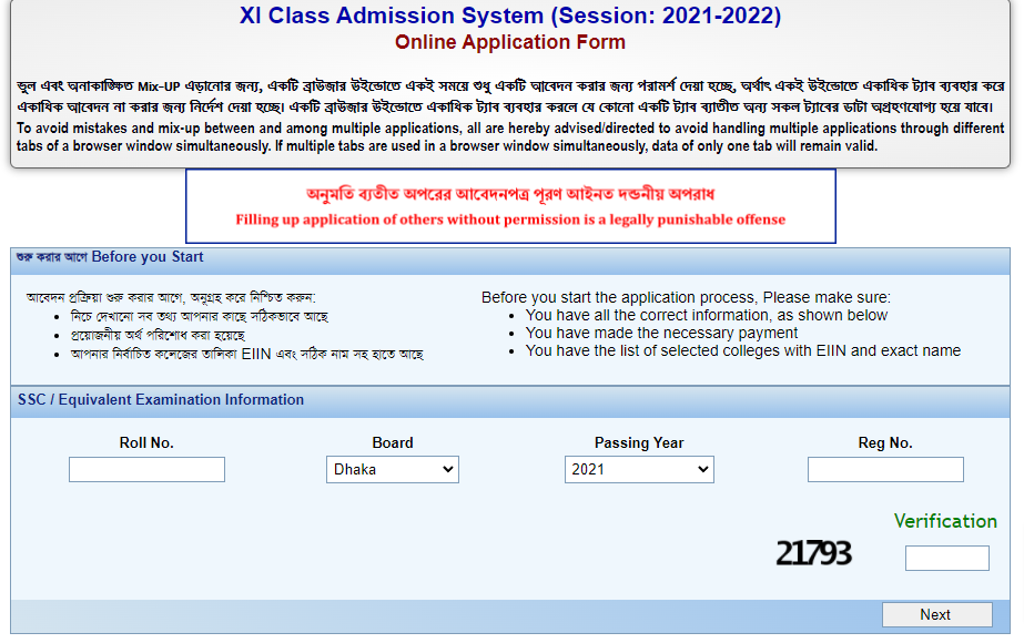 আজকে থেকে শুরু হয়ে গেলো একাদশ ভর্তির অনলাইন ফরম পূরণ।